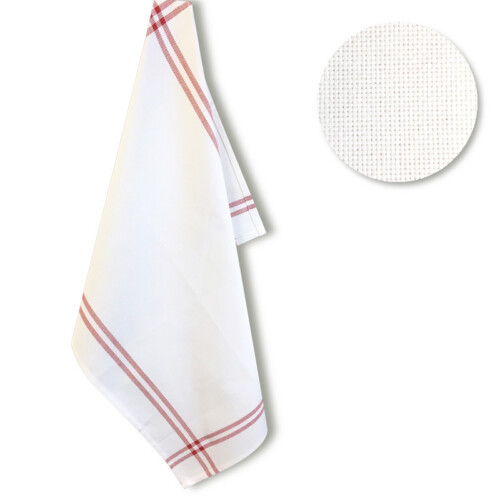Torchon Isa fond blanc/liserés rouges