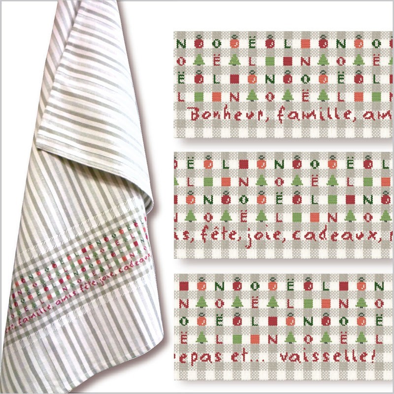Use one strand and stitch over 1. We used a grey Graziano® tea towel, reference colonia rigato (22 count).