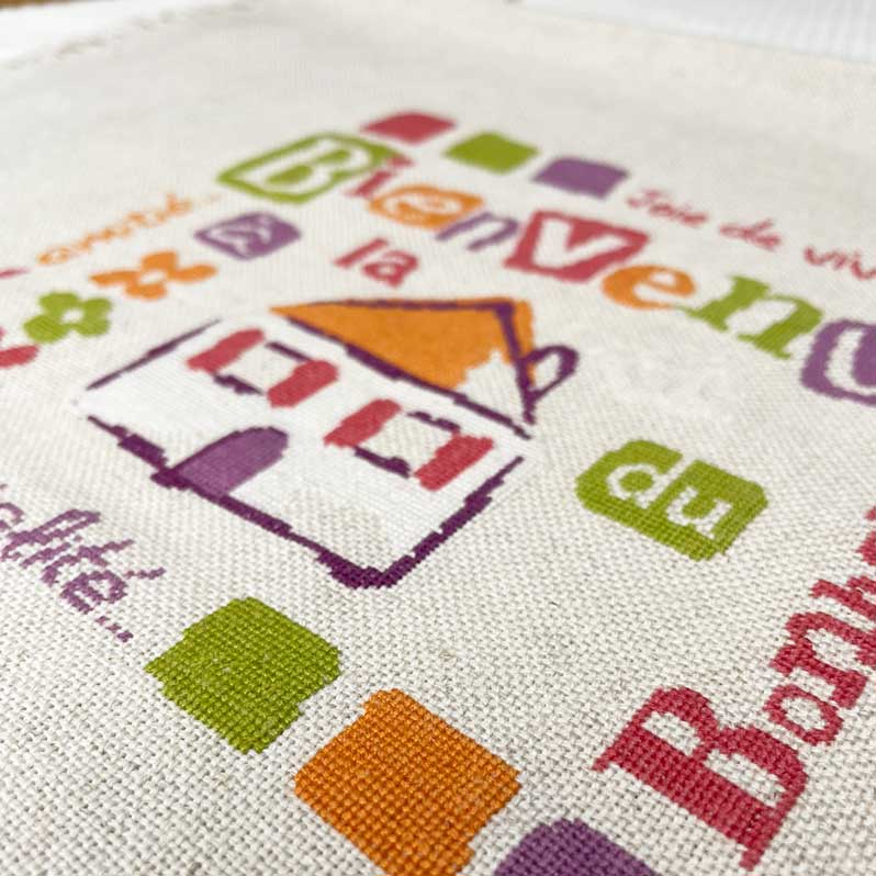 Version 2: à broder sur une toile écrue ou lin naturel clair avec les fils DMC: